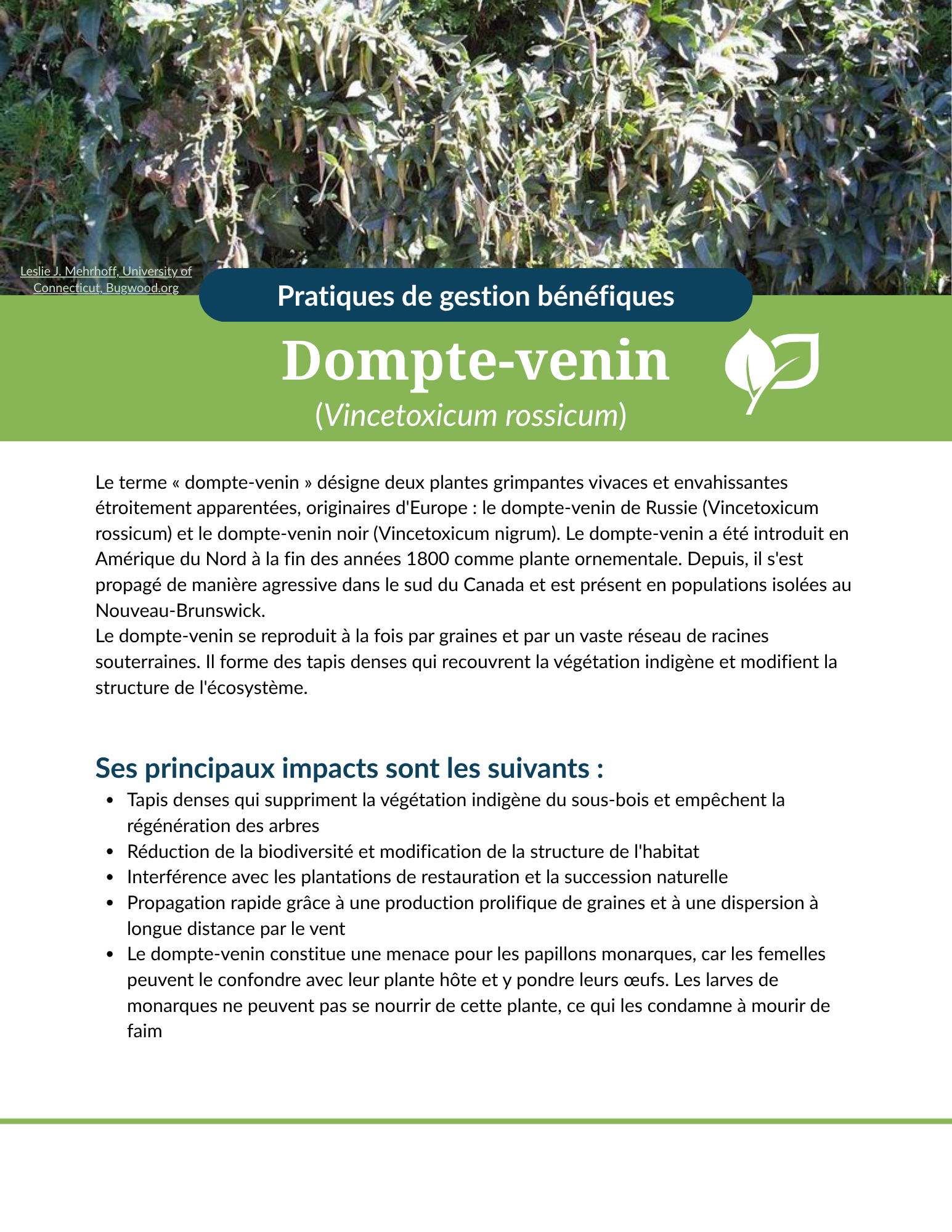 Pratiques de gestion bénéfiques pour Dompte-venin