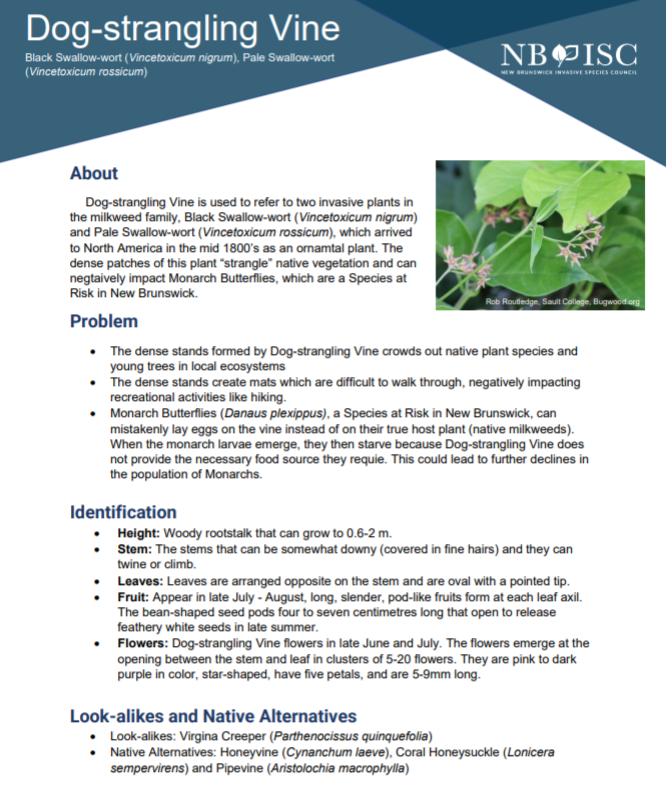 Curious to know what invaders are hiding in your gardens? We have many invasive plant fact sheets to help you identify and manage many of New Brunswick’s invasive plant species.